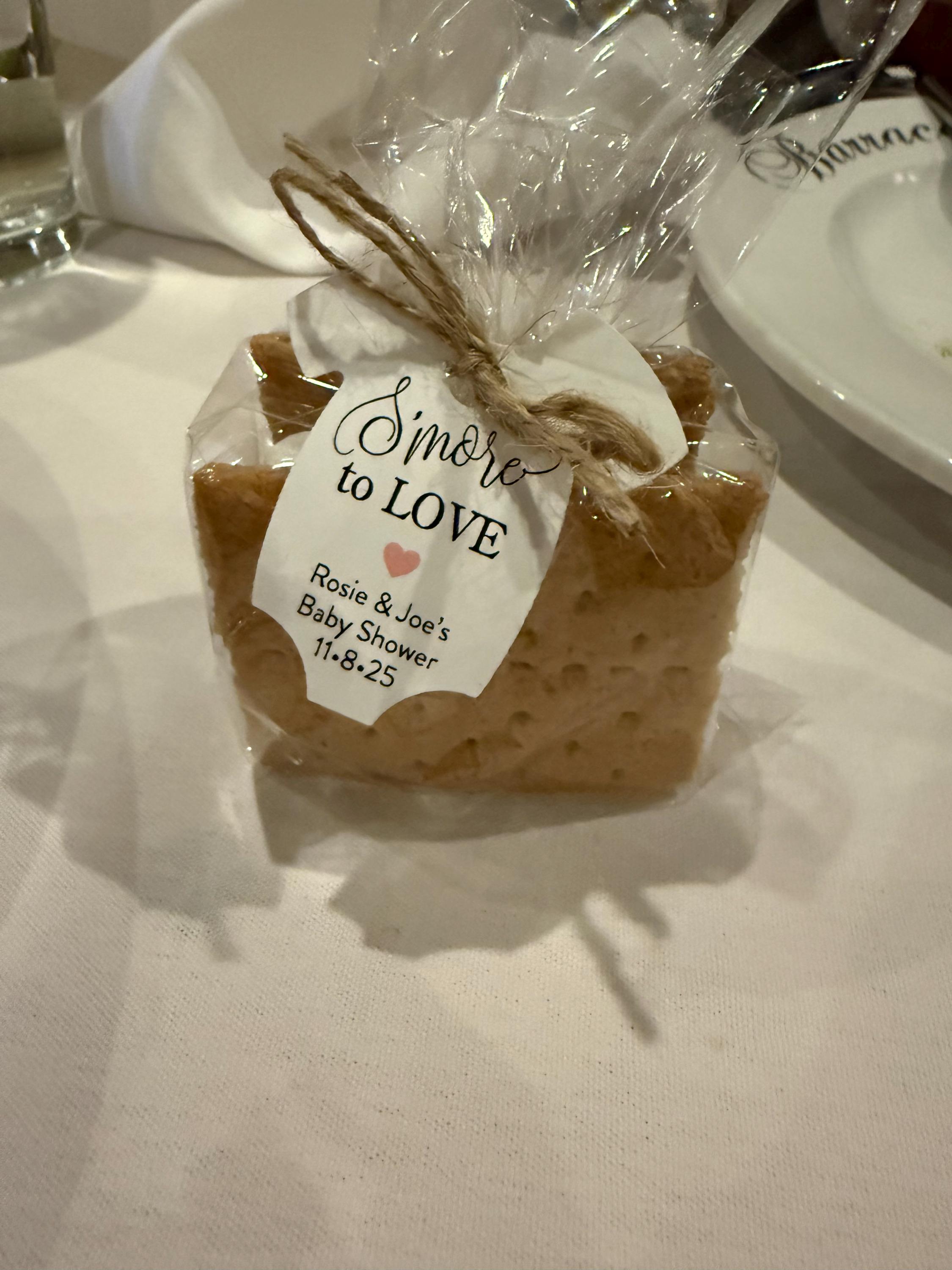 Pack of 40 tags*. We're adding Smore Love to our family. Bodysuit Favor Tags . (see drop down to select Tags Only or DIY kits.) Option for tags or tags, bags and twine. NO FOOD. Get baby favor tags for baby showers and gender neutral gatherings. Pink, blue, Red or Black gender reveal hearts can be add to your favors. You must select add bags please select DIY Kits