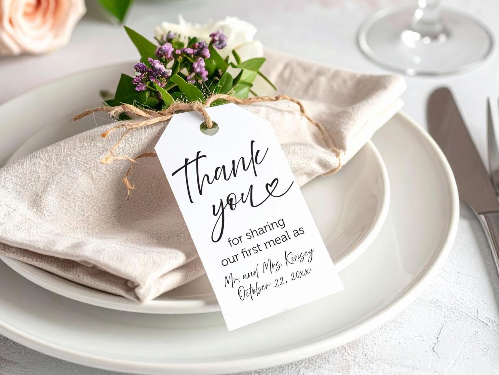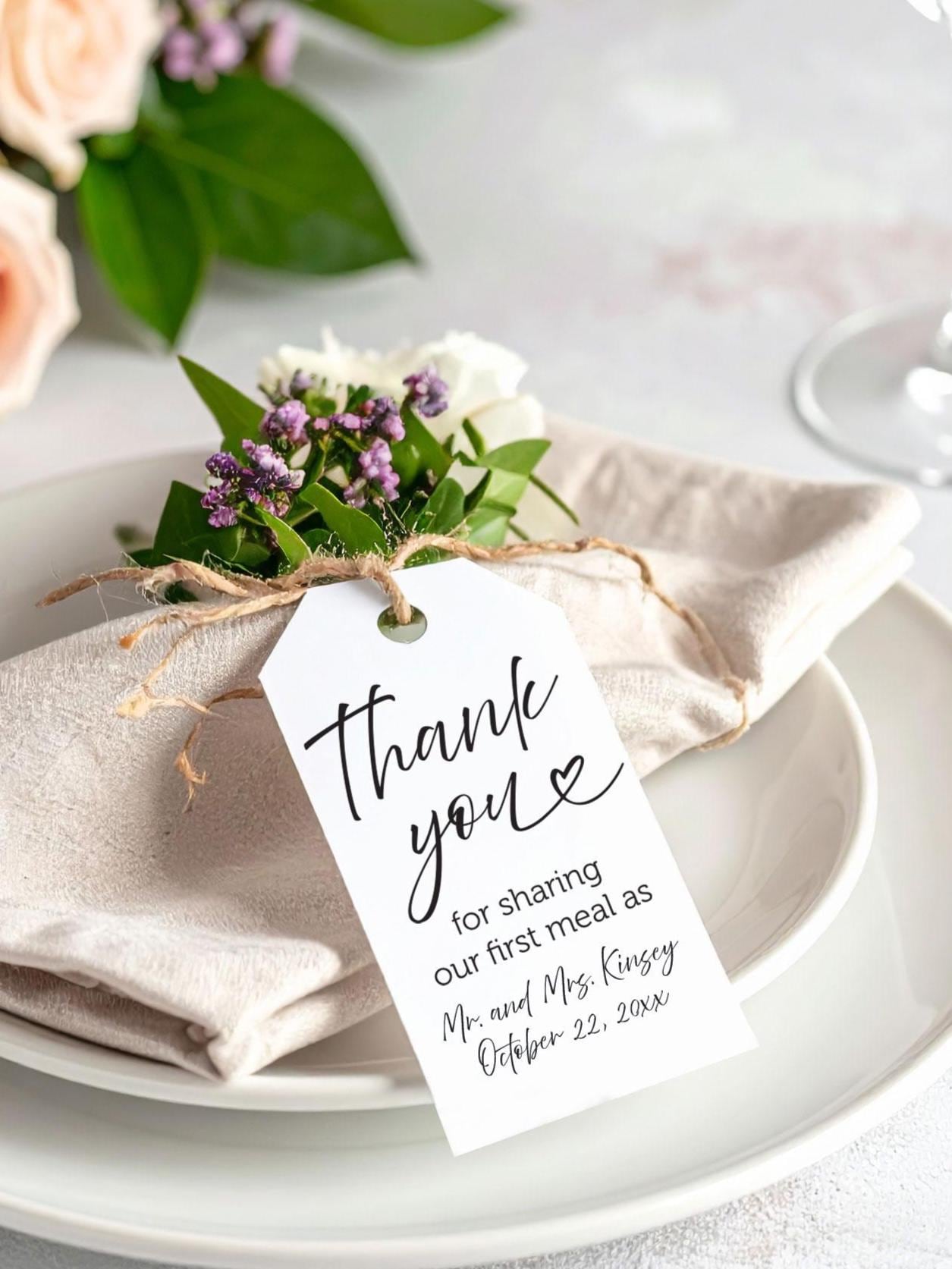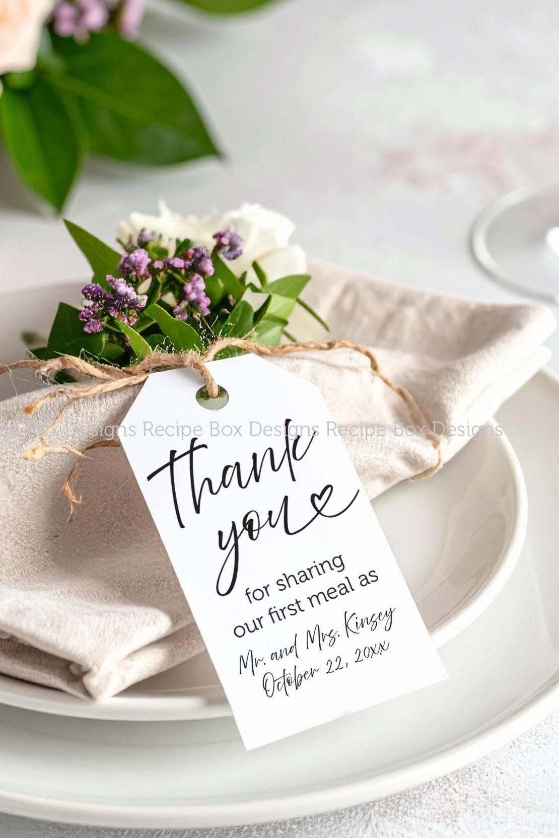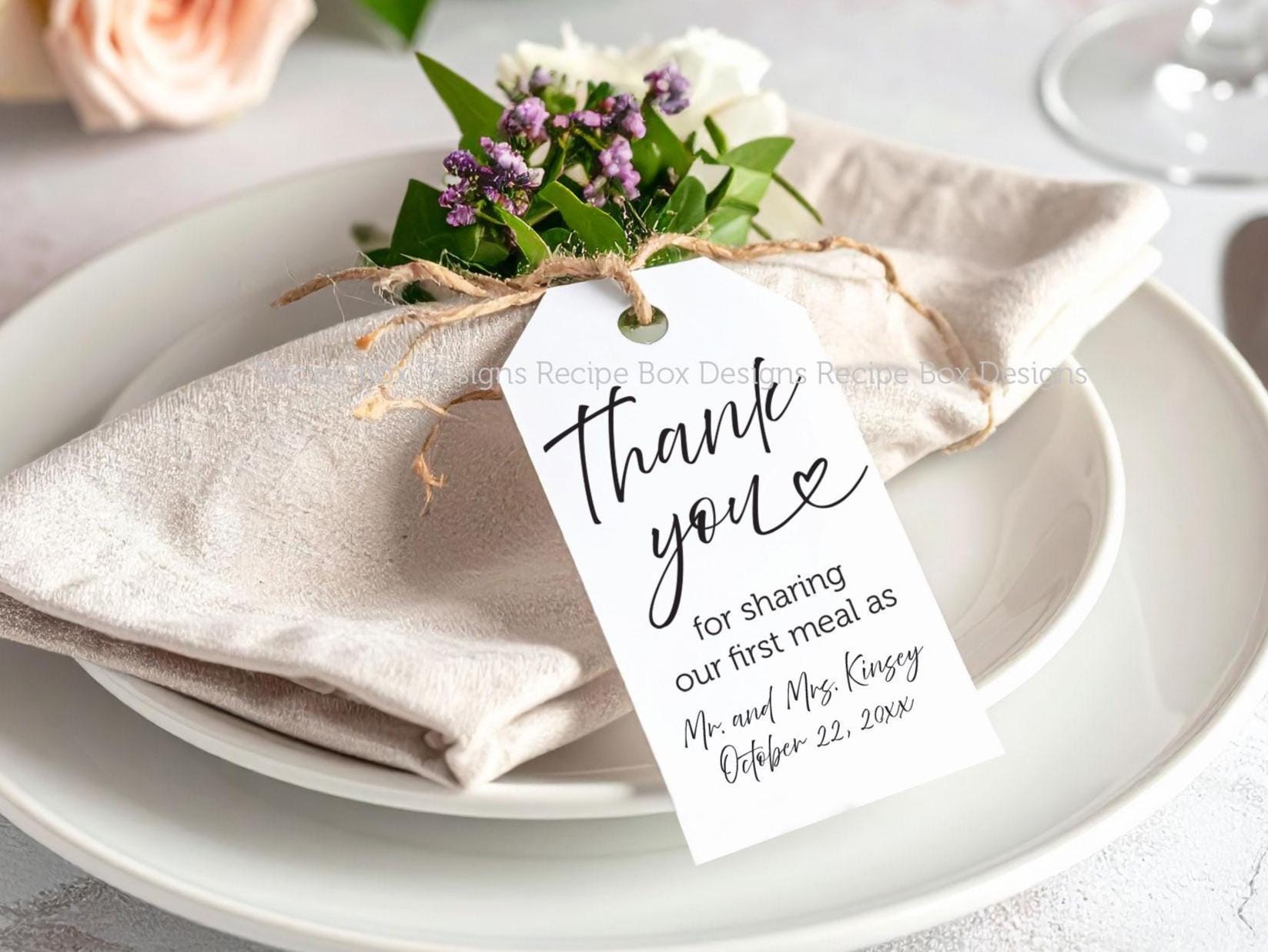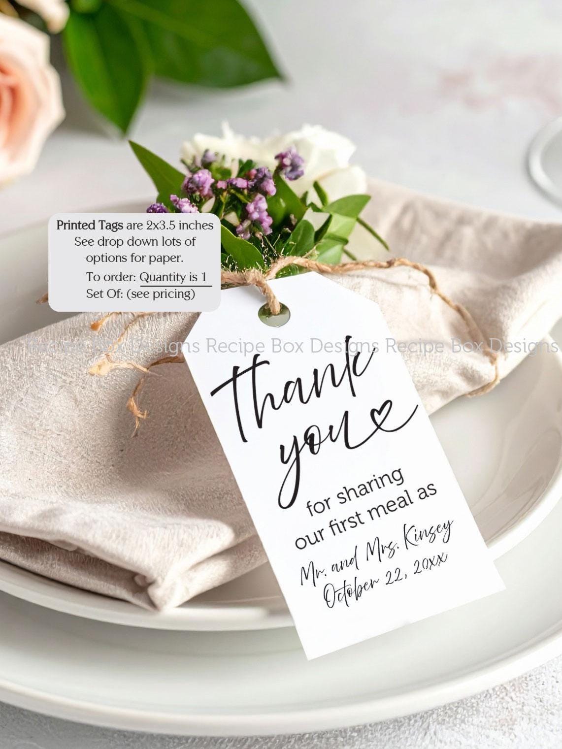 Printed wedding favor tags. Plating thank you tags are 2x3.5 inches and personalized with Mr and Mrs (your last name). Please point out if you need them to say Mr and Mr or Mrs and Mrs.