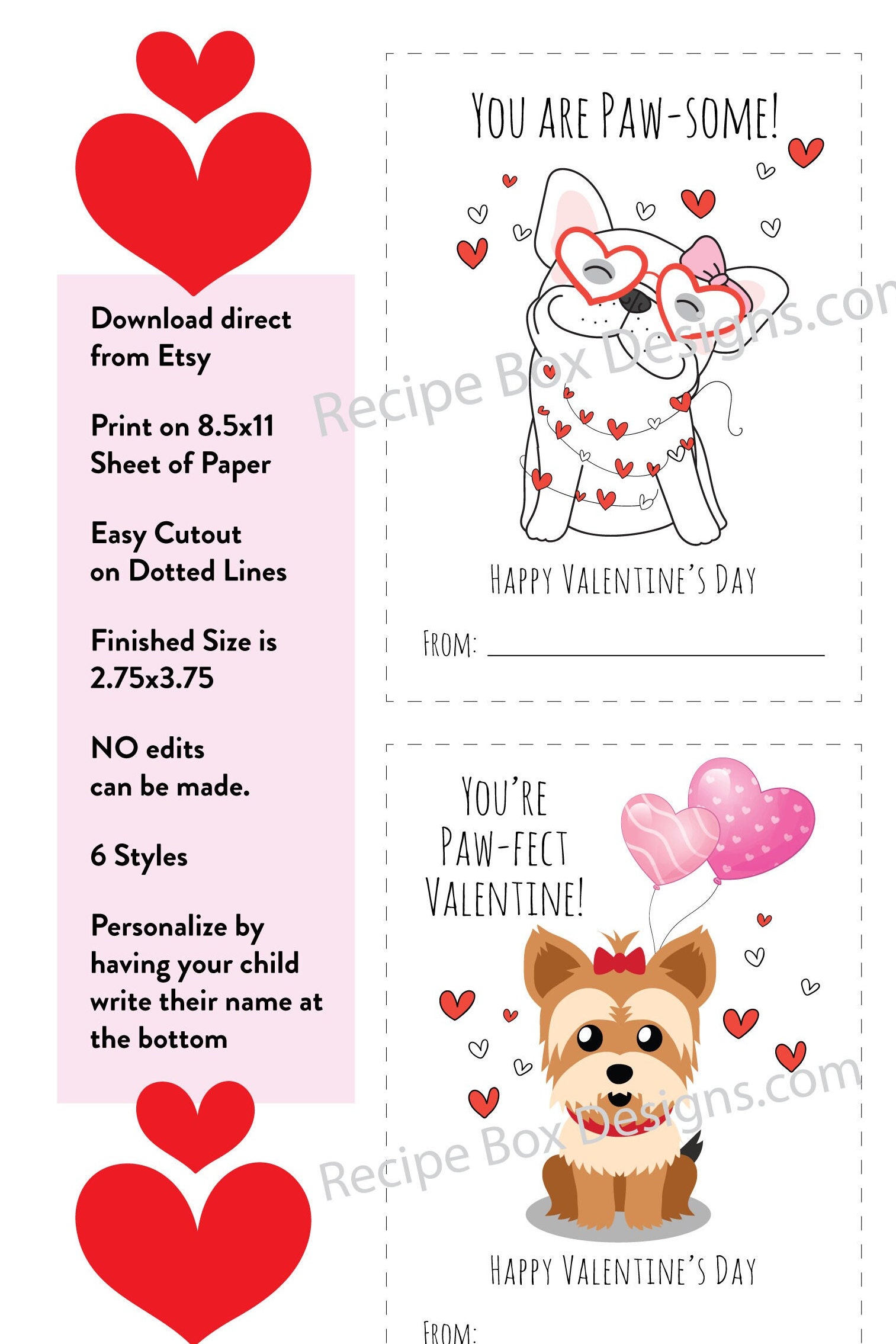 After purchasing, simply follow the instructions below to print and trim your valentines!