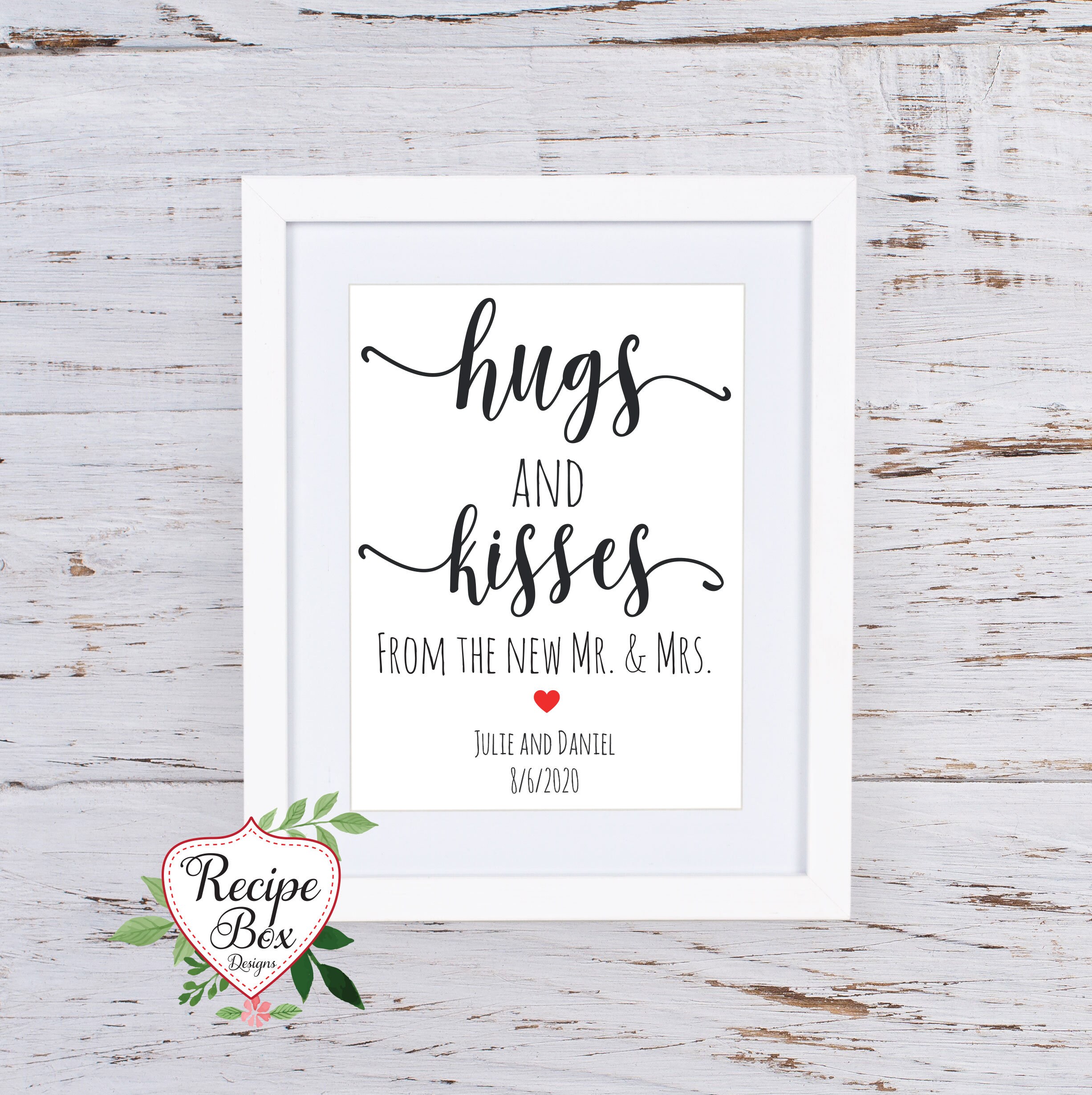 Hugs and Kisses from the new Mr and Mrs wedding sign. See the link to matching favor tags.