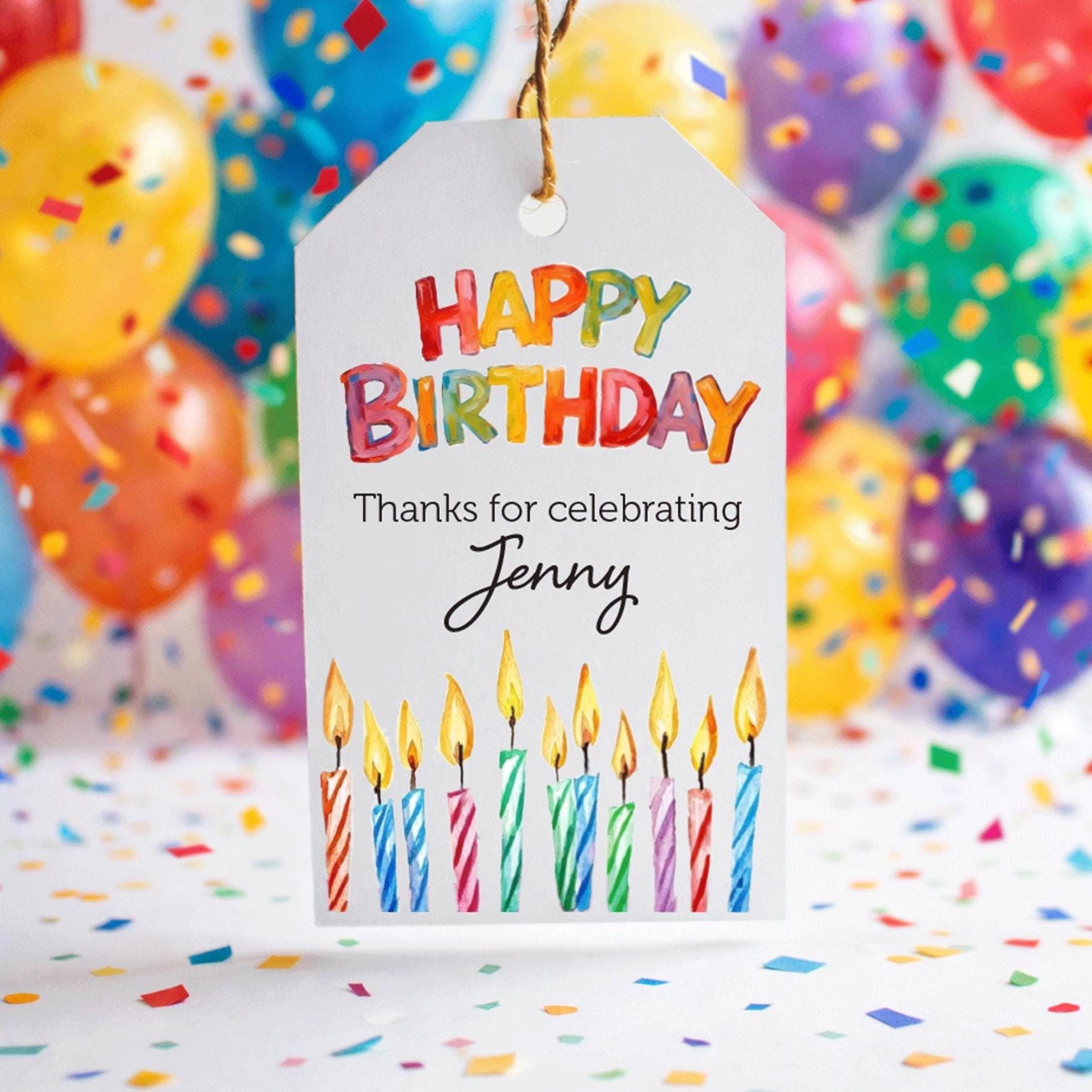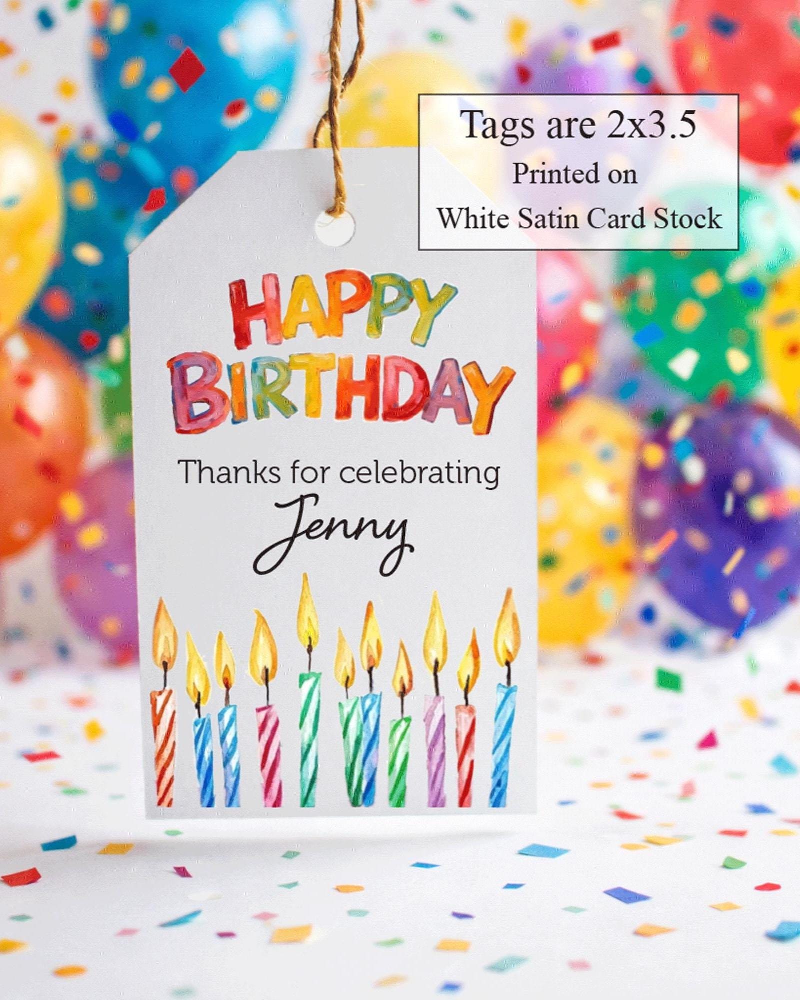 Birthday Favor Tags, Happy Birthday Celebration Favor tags, Printed Favor tags, Thank you tags. Print tags printed on the front side only.
